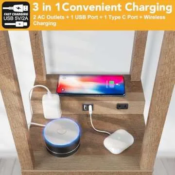 Mlambert Modern Shelf Floor Lamp with Wireless Charger & Fast Charging USB Ports & Type C Port & 2 Power Outlets,3 Tier Storage Lamp for Bedroom(Wood)
