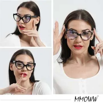 MMOWW Cat Eye Reading Glasses for Women Fashion Cute Blue Light Blocking Readers 4 Pack, Black/Brown Tortoise/Blue Pink/Transparent +2.75