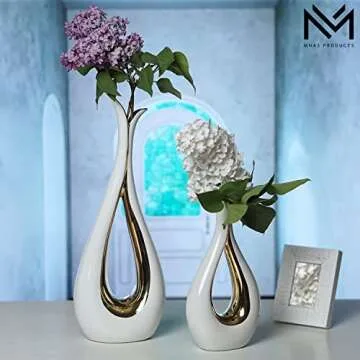 MNAS Products - White Ceramic Decorative Vases, Set of 2, Nordic, Modern, Minimalist Design, for Home Decor, Bedroom, Weddings, Restaurants, Office and More