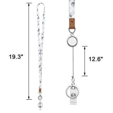 MNGARISTA Necklace Teacher Lanyard, Retractable ID Lanyard for Women, White Marble
