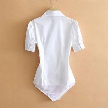 Mnjyihy Women Summer Fashion Bodysuit Shirt Short Sleeve V Neck Blouses Office Business Work Body Rompers WHITE XL