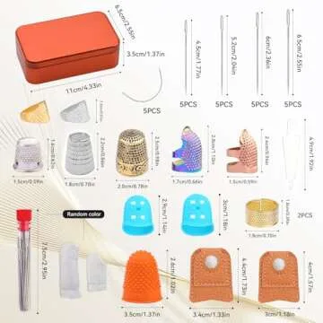 Alongside the thimbles, the package includes different sizes of sewing needles including 2.04inch*5, 2.08inch*5, 2.36inch*5, 2.56inch*5 sewing big eye needles, and 2inch*2 curved needles, enabling you to take on varying projects without a hitch. Whether you are embroidering delicate fabrics or handling thicker materials, you’ll find the right needle for the job. Everything comes stored conveniently in a handy metal box, allowing for effortless organization and quick access.
