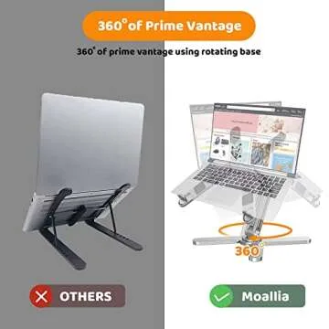 Moallia Laptop Stand with 360 Rotating Base, Computer Notebook Laptop Riser Metal Holder for Desk Collaborative Work, Fully Foldable for Easy Storage, Fits All MacBook, Laptops up to 16 inches