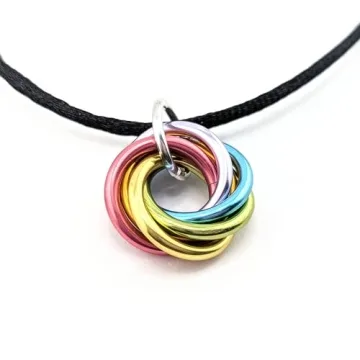 Show more Introducing the Möbii Necklaces (Multicolor) Pendant Combos – a stunning blend of style and functionality that transforms your everyday jewelry into a unique, tactile experience. These handcrafted pieces feature an eye-catching design, offered in vibrant pastel rainbow colors, making them an irresistible addition to any accessory collection. Each pendant comes in two distinct sizes: the Medium Pendant at 1 inch (2.5 cm) and the Small Pendant at 3/4 inch (2 cm), providing options for any fashion statement. Available with either a Basic Black Satin Cord or a Strong Stainless Steel Chain with a secure clasp, these necklaces are crafted to stay put while you flaunt your style.