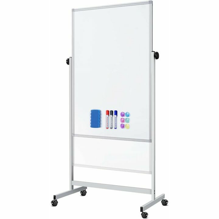 Unlike other whiteboards that often lack mobility or double-sided features, this whiteboard stands out with its height adjustability and easy maneuverability. Furthermore, the inclusion of essential accessories like magnets and pens sets it apart from other products where these must be purchased separately. Reviews highlight the excellent customer service and support, ensuring peace of mind and a reliable user experience.