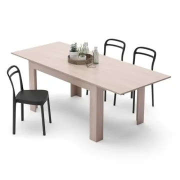Mobili Fiver Easy Extendable Dining Table, Pearled Elm - 55.1 x 86.6 in, Modern Design for 6-8 People