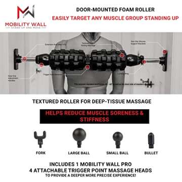 Mobility Wall Pro Series- Stand Up Door Mounted Textured Foam Roller for Deep Tissue Massage & Muscle Recovery for Exercise, Includes 4 Trigger Point Attachments