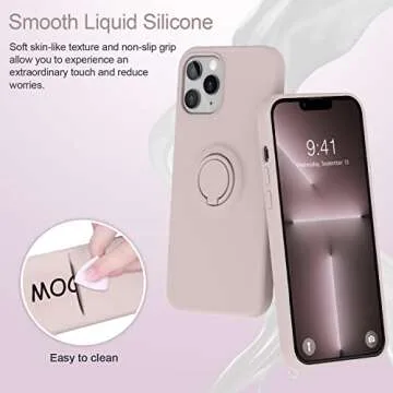 MOCCA Compatible with iPhone 13 Pro Max Case 6.7inch with Ring Kickstand |Liquid Silicone|Microfiber Linner|Anti-Scratch Full-Body Shockproof Protective Case for iPhone 13 Pro Max Women Girl-Pink Sand