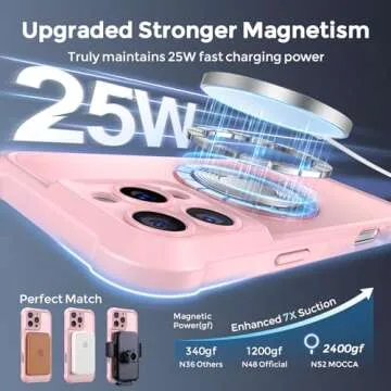 Show more Enhance your iPhone 16 Pro Max experience with the MOCCA Design Case, thoughtfully engineered to combine sophistication with functionality. This striking translucent matte phone case features a unique invisible magnetic stand that allows you to enjoy hands-free convenience whenever and wherever you need it. With its strong 20N magnetic suction, this case is fully compatible with MagSafe accessories, such as chargers and wallets, ensuring seamless connectivity without compromising on style. The stunning color options, particularly the spirited pink, are designed to make your device truly stand out, while the case itself offers robust protection against drops and scratches.