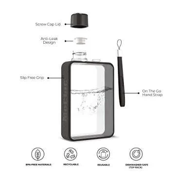 Show more This compact yet stylish water bottle redefines convenience for those constantly on the move. With its slim and discreet design, it easily fits into handbags, backpacks, or even pockets. Crafted with attention to detail by a leading brand, this travel companion is designed not just for looks but for superior functionality. Its rectangular shape allows you to carry more while occupying minimal space, making it the ideal solution for hydration without the bulk.