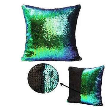 MOCOFO 4 Pack Glitter Sequins Pillow 16X16'' Decorative Pillow Cover Sequin Pillowcase Magic for Party Sofa Couch Car (2 Gradual Black+2 Matte Blue Purple)