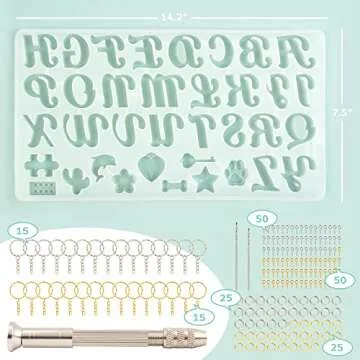 Show moreIntroducing the Mocoosy 182Pcs Fancy Alphabet Resin Molds Silicone Kit—a comprehensive solution for all your DIY resin crafting dreams! This all-in-one set equips aspiring artisans and seasoned crafters alike with the tools needed to create personalized and eye-catching keychains, pendants, and more. The kit features an impressive array of components including 1 letter & ornament resin mold, 30 key rings, 100 screw pins, and a handy manual hand drill complete with two sizes of drill bits. This thoughtful assortment ensures you won't need to purchase additional accessories, making it a convenient choice for anyone looking to add a touch of creativity to their decor and gifts.