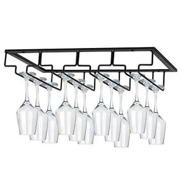 MOCOUM Wine Glasses Rack Under Cabinet Stemware Rack, Wine Glass Hanger Rack Wire Wine Glass Holder Storage Hanger for Cabinet Kitchen Bar (Black, 4 Rows 2 Pack)