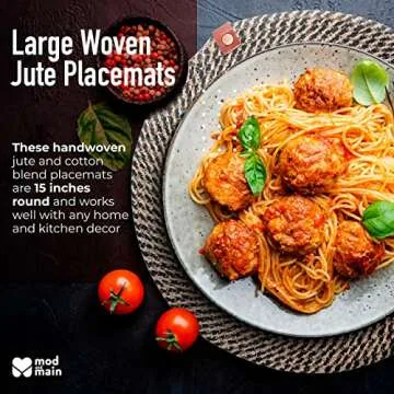 Show moreWelcome to a dining experience that marries aesthetics with functionality! The Mod and Main Round Jute Placemats are not just ordinary dinner mats; they are handmade works of art that elevate your dining space. Crafted from a premium blend of jute and cotton, these 15-inch round placemats come in a stylish brown and black finish, making them exceptionally versatile for any decor style. From cozy country homes to sleek modern setups, these placemats exude elegance and durability. Designed for comfort and beauty, they are the perfect solution for formal dinners or casual family gatherings, ensuring your tablescape is always impressive.