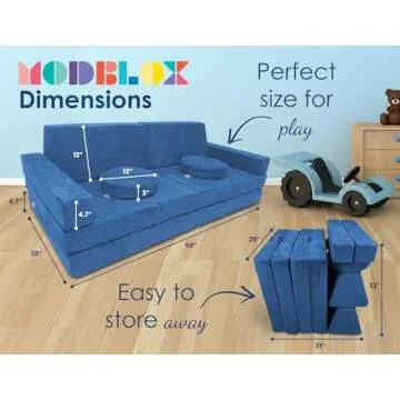 Mod Blox 10 Piece Soft Modular Kids Play Couch for Boys and Girls|Child Sectional Fort Building Sofa for Toddlers Playroom with Microsuede Covers and High Density Convertible Foam Cushions (Navy Blue)