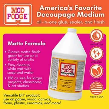 One of the standout features of Mod Podge is its durable, clear matte finish. Unlike ordinary glues that can yellow over time, Mod Podge maintains the original beauty of your work, enhancing its appearance without compromising on quality. Whether you're working with paper, fabric, or other materials, this product provides a consistent, professional-looking result that every crafter dreams of achieving. Plus, its quick-drying formula allows for speedy project completion, allowing you to enjoy your creations in no time!