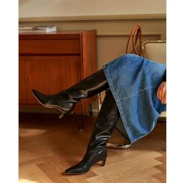 Modatope Black Boots for Women Knee High Kitten Heel Square Toe Long Boots Size 6.5