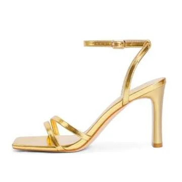 Modatope Gold heels Womens Sandals Square Open Toe Block High Heels Strappy Ankle Strap Sandals Comfort Dress Party Shoes Size 7