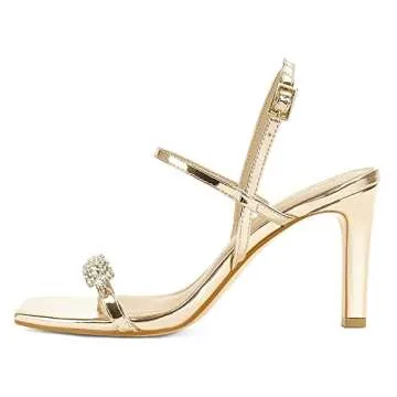 Modatope Gold Sandals for Women Strappy Sandals High Heel Sandals Women Open Toe Heeled Sandals Rhinestone Heels Sandals Size 6.5