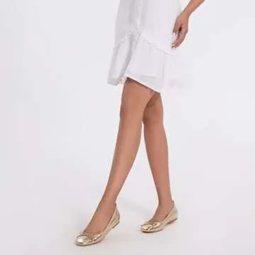 Modatope Womens Flats Comfortable Dressy Gold Ballet Ballerina Bow Bowknot Closed Square Toe Slip on Flats Shoes Size 6