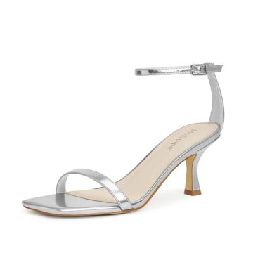 Modatope Womens Silver Heels Open Square Toe Kitten Heel Ankle Strap Sandals Heels for Women Size 6