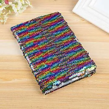 Modcon Magic Sequin Journal Reversible Sequin Office Notebook Mermaid Notepad School Diary for Girls Adults Festival Birthday Valentine's Day Gifts (Rainbow/Silver)