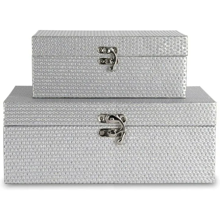 MODE HOME Silver Glitter Wooden Jewelry Storage Boxes Set of 2 for Glamorous Organization