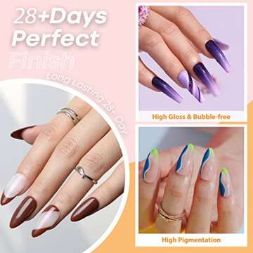 Crafted with precision, this gel polish kit allows you to not only choose from a **diverse range of colors** but also to unlock your creativity as you mix and match to craft your own perfect shades. Thanks to the easy-glide brush, achieving a professional-looking manicure has never been easier—perfectly smooth and bubble-free results are just a few strokes away! Invest in your nail health and style with these durable polishes that promise to last for **28+ days** without peeling or chipping, keeping your nails looking fresh and flawless.
