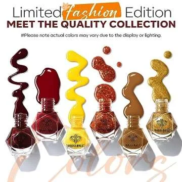 Show more Experience the vibrant essence of autumn with our Fall Nail Polish Set, a beautifully curated collection of six distinct colors designed to reflect the warm, rich hues of the season. This set includes shades of brown, red, orange, yellow, and two unique glitter shades that absolutely embody the cozy vibes of fall. As the leaves change colors, so can your nails, making this set perfect for anyone looking to add a touch of seasonal flair to their look.