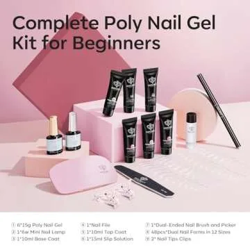 Show more Introducing the ultimate Polygel Nail Starter Kit, a game-changer for those who adore nail art yet seek the convenience of doing it from home. This exquisite kit is designed for anyone eager to explore the world of polygel nails with ease and excitement. It includes everything you need to create stunning nail designs, from user-friendly instructions to essential tools. With top-notch materials and a compact UV curing light, your nail art journey will be both enjoyable and fulfilling.