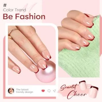 Modelones Press on Nails, Red Chrome French Short Square Fake Nails, Spring Easter Reusable Nail Kit with Nail Glue Adhesive Tabs Mini Nail File, Nails Press Ons 32Pcs16 Sizes, Women Girl Gift