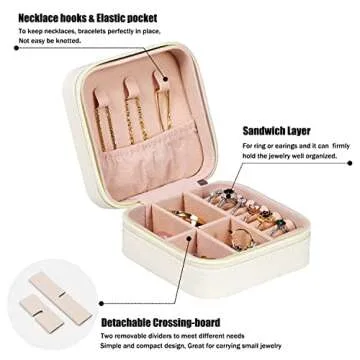 MODENGKONGJIAN Mini Jewelry Travel Case, PU Leather Travel Jewelry Organizer Box, Small Portable Portable Jewellery Storage Holder for Womens Rings Earrings Necklaces Bracelets (White)