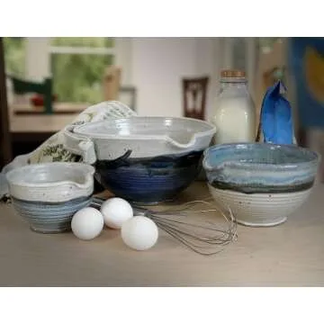 Modern Artisans American Made Stoneware Pottery Batter Bowls, 3-Piece Nesting Set, French Blue Glaze