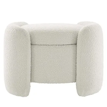 Show more Introducing the Modern Boucle Upholstered Ottoman, the perfect fusion of style and functionality! Crafted from luxurious Nebula Upholstered Teddy Fabric, this ottoman is not just a beautiful addition to your home decor, but also a practical solution for storage. With its plush velvet texture, it offers a super soft touch that elevates the comfort level in any space, be it your living room, bedroom, or vanity area. Designed to fit seamlessly under your vanity desk or in any corner of your home, it's a versatile seat that blends elegance with convenience.