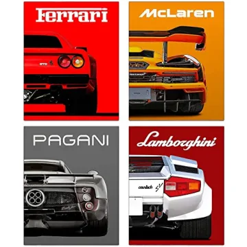 Show moreRev up your living spaces with our exquisite Modern Car Posters Classic Supercar Wall Art Prints. This stunning collection features four high-quality, 8x10 inch prints that showcase iconic supercars like Ferrari, Lamborghini, McLaren, and Pagani. Perfect for a boy's room, man cave, or any automotive enthusiast's sanctuary, these prints harness the thrill of classic sports cars, creating a jubilant environment that sparks passion and nostalgia. Made from 100% premium canvas, each art piece ensures exceptional durability while radiating vibrant colors that are sure to catch the eye and inspire excitement.