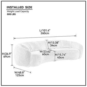 - Spacious Comfort: Dimensions of 102.2"L x 48.8"W x 26.9"H offer ample seating and back support for ultimate relaxation.
