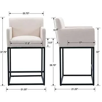 Show moreIntroducing our exquisite Modern Counter Height Bar Stools Set of 2, tailored for the discerning homeowner who appreciates both style and functionality. These stools boast a sophisticated design, featuring a luxurious linen fabric upholstery that not only enhances the aesthetic of your kitchen or bar area but also provides a plush seating experience. With a height of 26.75 inches, they are expertly designed to complement countertops that stand between 35 and 40 inches, ensuring that you sit comfortably at your kitchen island or bar. The sturdy black metal frame guarantees durability, making these stools a long-lasting addition to your home.