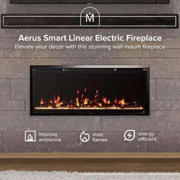 Modern Ember Aerus 42 Inch Smart Linear Electric Fireplace - Recessed in-Wall and Wall-Mount, Multiple Flame Colors, Compatible with Alexa and Google Assistant, Black
