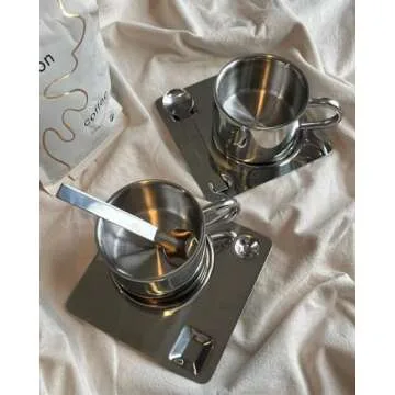 Show moreDiscover the ultimate in coffee elegance with the Modern Haze Stainless Steel Cup with Saucer & Spoon Cappuccino Set! Crafted with meticulous attention to detail, this exquisite set seamlessly combines industrial sophistication with high-grade functionality. Made from premium 304 stainless steel, these cups bring an unparalleled blend of durability and style to your coffee experience. Featuring a sleek matte drawing finish inside and a stunning mirror-polished exterior, this cup set isn’t just a functional item—it’s a statement piece.