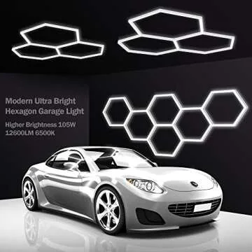 MODERN Hexagon LED Garage Light, Super Bright 105W 12600LM 65000K Daylight White LED Car Garage Light, 3 Hexagonal Grids for Garage, Shopping Mall, Workshop and Car Detailing etc.