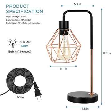 When compared to other lamps in the market, the Modern Industrial Table Lamp stands out due to its unique geometric cage design and high-quality rose gold finish. While many lamps may offer a simple light source, this piece doubles as a stylish decor item that enhances room aesthetics. Furthermore, its UL listed safety features, combined with versatility across various settings, make it a trustworthy choice amongst industrial lamps.