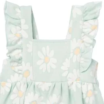 Modern Moments by Gerber Baby Girls' Sleeveless French Terry Romper, Mint Daisies, 18 Months