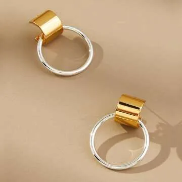Modern Moments Two Tone Earrings - Silver and Gold Earrings For Women Trendy - Silver Hoop Earrings