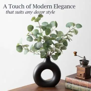 Modern Vases for Home Decor, Circle Vase with Hole, Vase for Pampas Grass, 9-in Black Vase, Donut Vase, Black Vase for Pampas Grass, Black Vases Home Decor, Black Ceramic Vase, Boho Vases for Decor