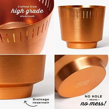 MODN LOVR Mid Century Modern Planter Pot Indoor with Drainage - Large 8.5 Inch Round Stylish Leak Proof Aluminum Houseplant Pots for Home or Office, Succulent and Cactus Holder, Anodized Copper