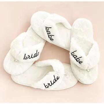 ModParty Babe Slippers | Matching Bridesmaid Slippers | Wedding Getting Ready Slippers | Fuzzy White Slippers for Her | Friend Gift Idea | Bridal Party Slippers (Babe)