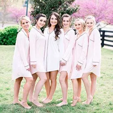 ModParty Women’s Long Sleeve Pajama Top Button Down Bridesmaid Bachelorette Sleep Shirt Dress (Pink)