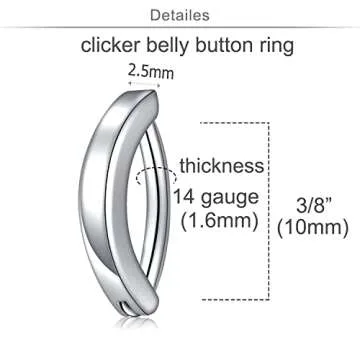 Show moreIntroducing the MODRSA Small Belly Button Ring, a delightful blend of style, comfort, and quality. This exquisite belly button jewelry set includes a chic clicker belly button ring and two elegant small jewelry pieces, designed to enhance your piercing experience. Constructed from high-quality stainless steel, these rings are hypoallergenic, ensuring they are gentle on the skin without causing irritations or reactions. With a smooth and polished finish, they promise longevity and maintain their stunning style, making them a perfect accessory for any outfit.
