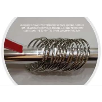 Clean the surface with included alcohol wipes, peel off the red backing, and apply the slide along the rod's length.