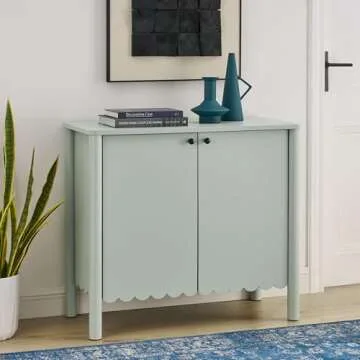 Show moreEmbrace contemporary elegance with the Modway Emmeline 2-Door Scalloped Sideboard in Sage. This artistic sideboard features a stunning scalloped bottom edge that adds a unique touch of movement to your living spaces. Perfectly designed to enhance the aesthetic of dining rooms, living rooms, or entryways, the Emmeline brings together functionality and style. Its lovely sage color is not only soothing but also aligns beautifully with modern decor.
